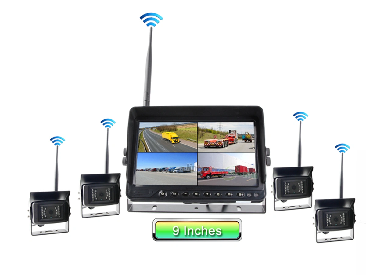 This 9″ wireless camera system support 1 or 4 channels wireless camera signal input, and display 4 split images at the same time. It can be single screen, split screen, quad screen or H-split screen