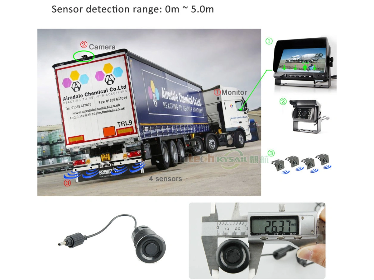 Parking Sensor and Camera Monitor Fusion System for Truck with 4 Waterproof Probes